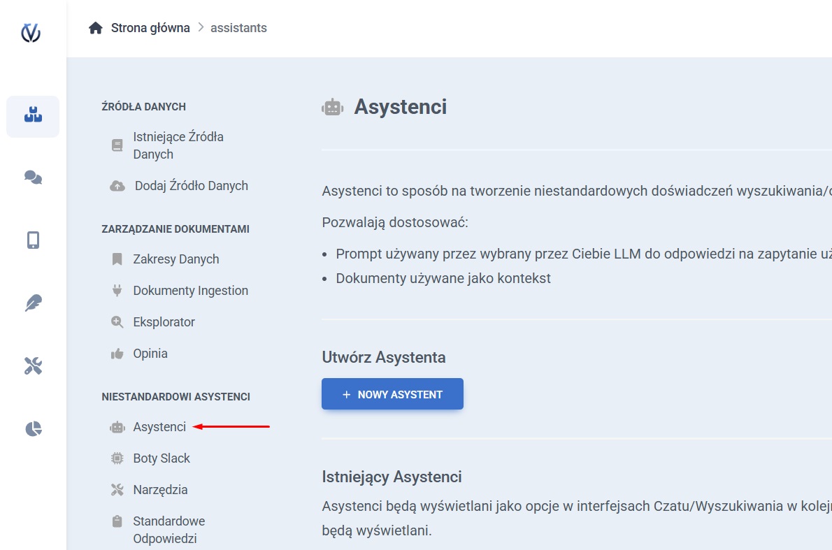 W menu po lewej stronie wybierz Asystenci.