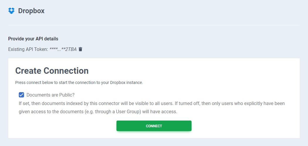To connect CogniVis AI with Dropbox, you need to generate a API Token in Dropbox. This token will be used to authenticate the connection between CogniVis AI and Dropbox.