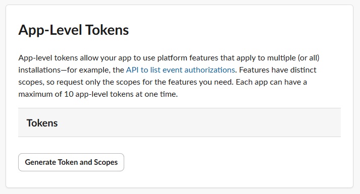 In Basic Information tab, find the App-level tokens section, and click the button to generate an App-level token.