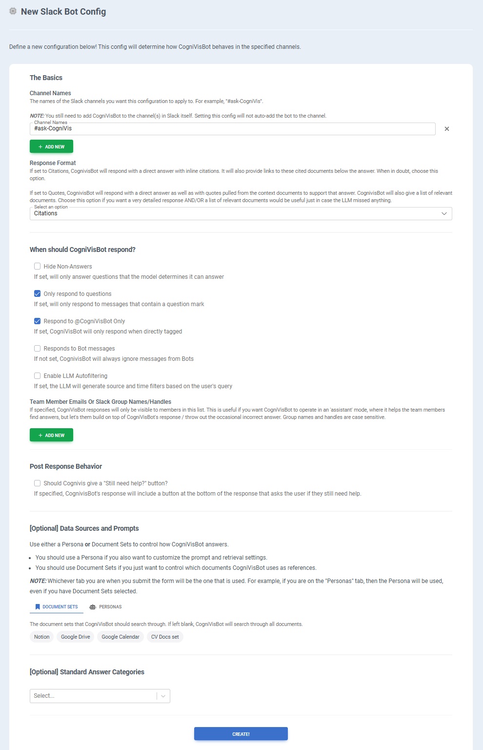 Set up the Slack Bot according to your needs and press the "Create" button.