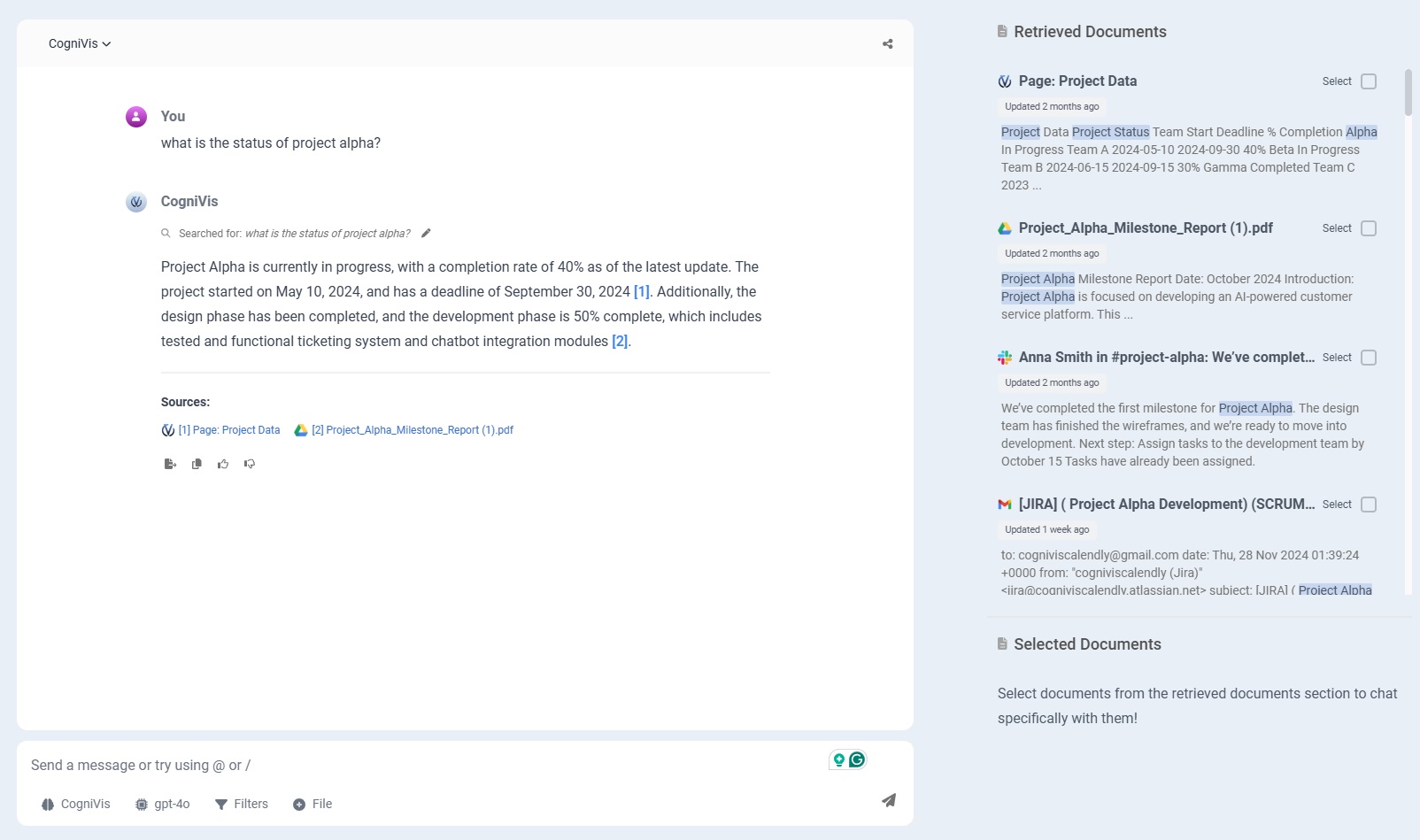 Nach der Auswahl können Sie eine Frage stellen. Der Assistent liefert eine Antwort, basierend auf den verbundenen Daten und seinen Anweisungen.