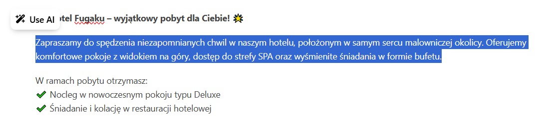 Wygenerowany wynik możesz wstawić bezpośrednio w miejsce zaznaczonego tekstu.