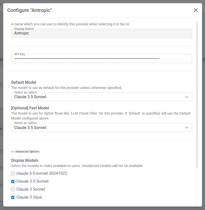 Geben Sie beim Hinzufügen eines neuen LLM-Anbieters die erforderlichen Informationen ein.