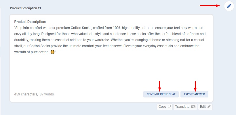 • Continue modifying the answer in an AI chat.