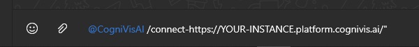 Tag the bot, write "/connect-https://YOUR-INSTANCE.platform.cognivis.ai/" hit send.