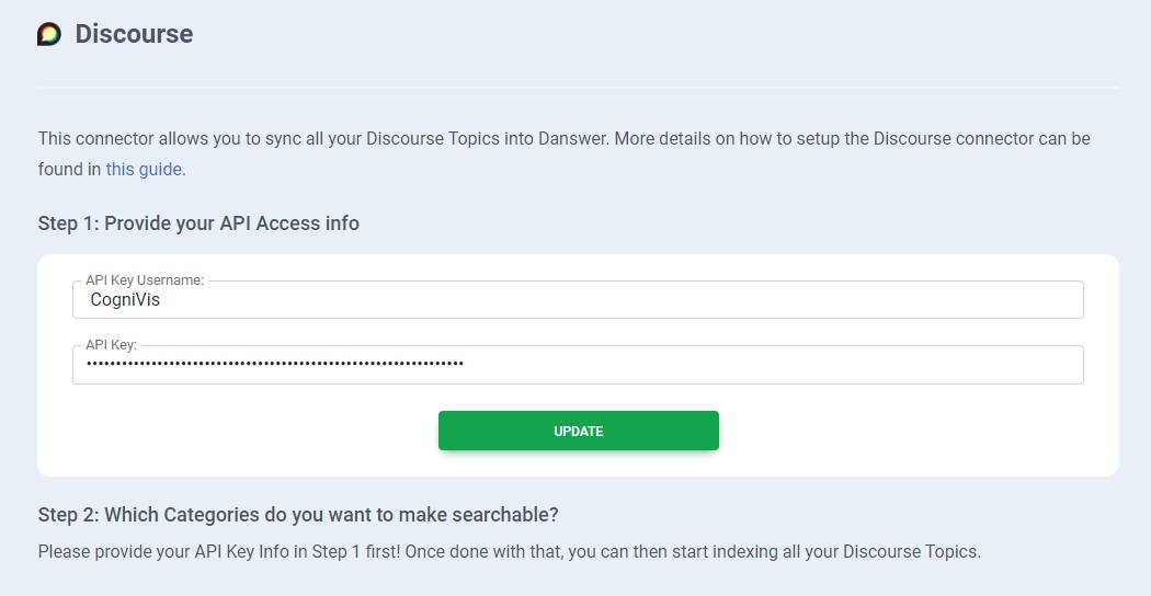 Enter the API Key Username(Discourse account username) and the previously copied API Key.
