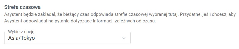 Wybór strefy czasowej sprawia, że odpowiedzi asystenta są spójne z lokalnym kontekstem użytkowników.