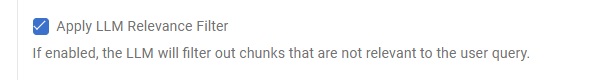 Por lo general, es mejor mantener activado el filtro de relevancia LLM para obtener los resultados más relevantes. Sin embargo, si no usas una base de conocimiento específica o quieres que el asistente imite el estilo de escritura de la fuente más que extraer información precisa, considera desactivarlo.
