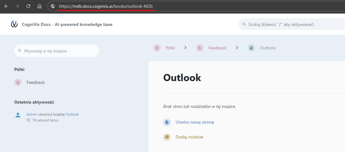 Opinie o odpowiedziach generowanych przez asystenta w rozszerzeniach można zapisywać bezpośrednio w dokumentacji. Dzięki temu wszystkie informacje zwrotne trafiają do wybranej książki i mogą być później wykorzystane do pracy nad bazą wiedzy.