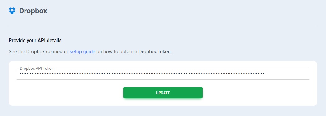 Add your Dropbox API token & save it.