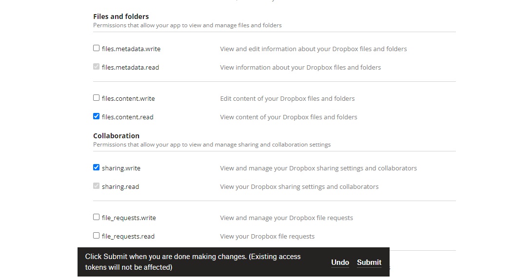 • Select Full Dropbox as the type of access