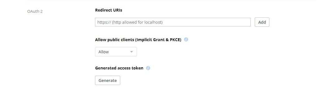 Go to the Settings tab. Move down to the OAuth 2 section and press Generate button to get an access token.