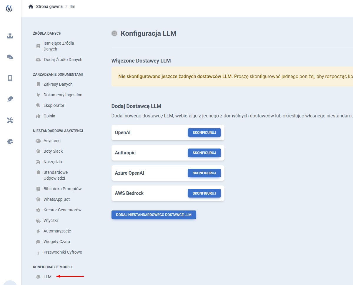 Ensuite, ouvrez la section « LLM » dans le menu à gauche de l’écran.